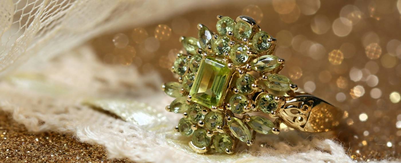 Peridot is the gem variety of olivine, a mineral with a chemical composition that includes iron and magnesium. The iron in the gems is what causes peridot’s yellowish-green colour.