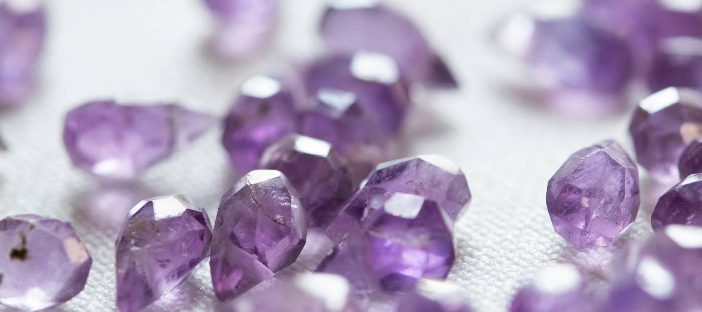 Amethyst is a variety of quartz. Its purple colour comes from impurities in the crystal structure and it’s colour can range from light purple to a deep, royal purple.